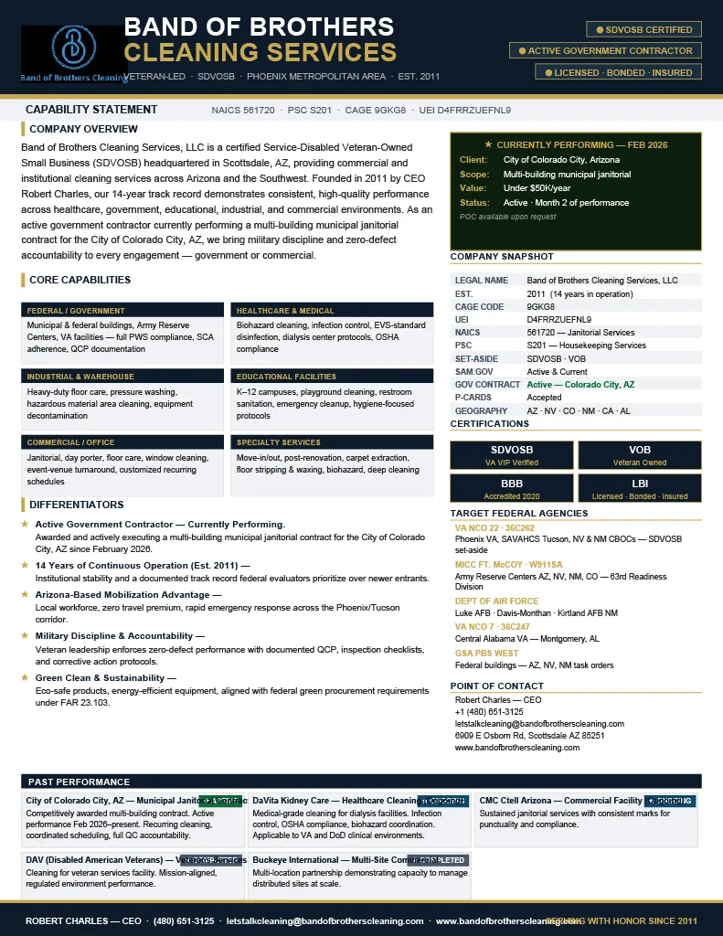 Veteran-owned and operated. We bring discipline, accountbility, and meticulous attention to detail to offices, medical facilities, and critical infrastructure across the Silicon Desert.